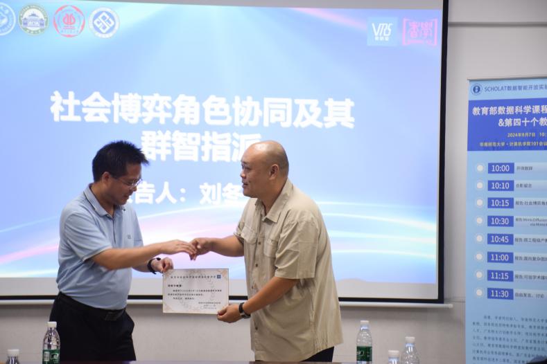 中山大學(xué)潘炎副教授為賀超波教授頒發(fā)感謝狀