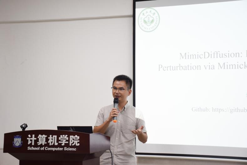 會(huì)議由李春英教授和劉海副教授主持。大會(huì)包括7個(gè)主題報(bào)告,華南師范大學(xué)湯庸教授做“開場(chǎng)詞及”基于社交網(wǎng)絡(luò)的虛擬教研室建設(shè)實(shí)踐“主題報(bào)告,”廣東工業(yè)大學(xué)劉東寧教授的報(bào)告討論了如何將博弈論與群體智能應(yīng)用于教育管理;中山大學(xué)賴韓江副教授詳細(xì)介紹了“MimicDiffusion”技術(shù),該技術(shù)通過模擬干凈的擴(kuò)散模型,有效凈化了AI模型中的對(duì)抗性擾動(dòng);廣州番禺職業(yè)技術(shù)學(xué)院楊鵬教授分享了工程級(jí)產(chǎn)教融合平臺(tái)的構(gòu)建經(jīng)驗(yàn);華南師范大學(xué)賀超波教授介紹了學(xué)者網(wǎng)數(shù)據(jù)對(duì)復(fù)雜圖社區(qū)發(fā)現(xiàn)方法研究的支撐作用;華南師范大學(xué)林榮華副研究員分享了可信學(xué)術(shù)媒體的構(gòu)建與學(xué)者大模型的應(yīng)用。