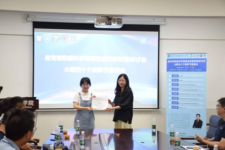 SCHOLAT開放實(shí)驗(yàn)室將開展了系列活動(dòng)。9月7日SCHOLAT實(shí)驗(yàn)室承辦"教育部數(shù)據(jù)科學(xué)課程群虛擬教研室研討會(huì)"。此次活動(dòng)由教育部數(shù)據(jù)科學(xué)課程群虛擬教研室主辦,華南師范大學(xué)計(jì)算機(jī)學(xué)院承辦,華為技術(shù)有限公司和學(xué)者網(wǎng)協(xié)辦。會(huì)議主題為“數(shù)據(jù)智能與大模型賦能智慧教育”。來自中山大學(xué)、暨南大學(xué)、華南師范大學(xué)、廣東工業(yè)大學(xué)、廣東外語外貿(mào)大學(xué)、廣東藥科大學(xué)、廣東財(cái)經(jīng)大學(xué)、廣東技術(shù)師范大學(xué)、廣東第二師范學(xué)院、嘉應(yīng)學(xué)院、廣州軟件學(xué)院、廣州新華學(xué)院、深圳職業(yè)技術(shù)大學(xué)、廣州番禺職業(yè)技術(shù)學(xué)院、廣州生態(tài)職業(yè)技術(shù)學(xué)院,以及華為、騰訊、南方電網(wǎng)、廣發(fā)基金、中信銀行等20多所高校和企業(yè)50多名專家學(xué)者參加了線下會(huì)議,吉首大學(xué)、南寧師范大學(xué)、貴州師范大學(xué)、浙江師范大學(xué)等部分老師通過線上參加了活動(dòng)。 巴基斯坦拉合爾教育大學(xué)博士生導(dǎo)師Aftab Akram(華師2019屆博士,首屆校“十佳國際學(xué)生”)發(fā)表了充滿激情的致詞視頻。