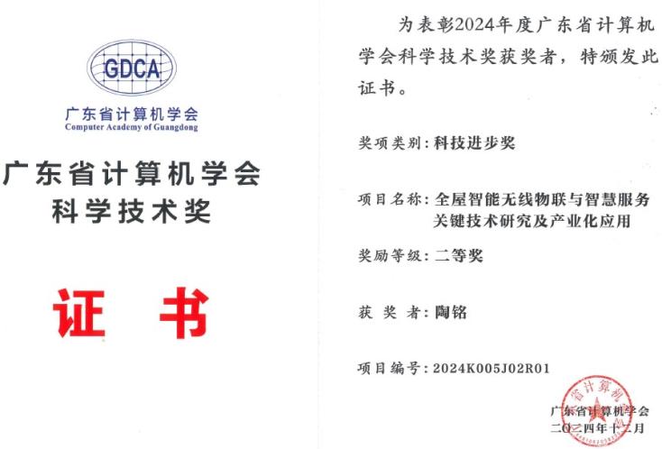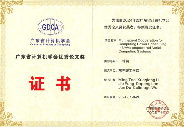 3. 2024年,實驗室團隊成員作為第一完成人獲得廣東省計算機學(xué)會科技進步獎二等獎1項,廣東省計算機學(xué)會優(yōu)秀論文獎一等獎1項,創(chuàng)新東莞青年科技獎1項。