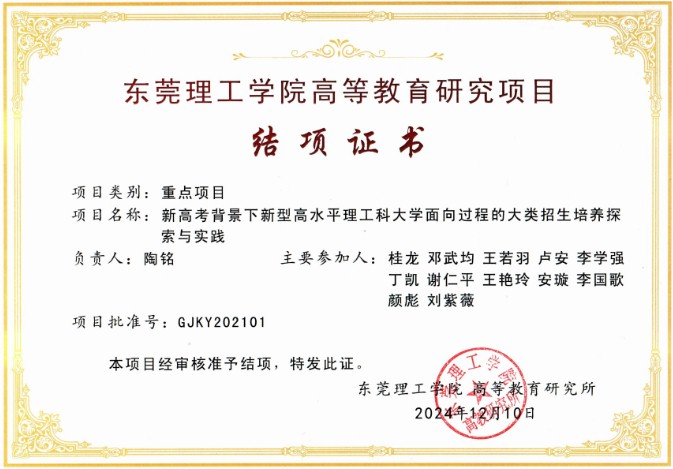 (2)東莞理工學(xué)院2020—2021學(xué)年高教研究項目(重點課題): 新高考背景下新型高水平理工科大學(xué)面向過程的大類招生培養(yǎng)探索與實踐.
