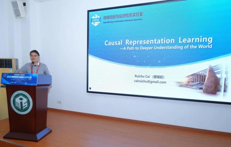 之后,廣東工業(yè)大學(xué)蔡瑞初教授作了題為“Causal Representation Learning: A Path to Deeper Understanding of the World”的專題報告。報告伊始,蔡瑞初教授以牛頓發(fā)現(xiàn)萬有引力的案例作為引入點,生動形象地向與會者介紹了人類如何利用因果關(guān)系認識和理解這個世界。緊接著,他從潛在因果發(fā)現(xiàn)的理論延伸到因果表示學(xué)習(xí)理論。蔡瑞初教授著重介紹了潛在因果發(fā)現(xiàn)理論在不同情況下的適用性,包括線性和非線性的情況,進而證明因果表示學(xué)習(xí)理論從特殊到一般的能力。他通過嚴謹?shù)睦碚摲治龊?/span>實驗證明,讓在場聽眾清晰地認識到因果表示學(xué)習(xí)的重要性。