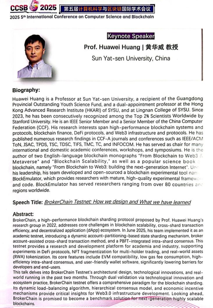 | (報道引述) “作為學(xué)界前沿代表,中山大學(xué)嶺南學(xué)院院長林建浩教授、中山大學(xué)軟件工程學(xué)院和嶺南學(xué)院雙聘教授黃華威教授參與了本次會議。中山大學(xué)一直是研究院緊密合作的高?;锇椋麄兠翡J地把握時代脈搏,今年在嶺南學(xué)院新設(shè)立了數(shù)字經(jīng)濟(jì)專業(yè),與我們的研究方向高度契合,本次會議特意邀請了黃華威教授進(jìn)行了主題分享,他系統(tǒng)闡述了其團(tuán)隊在區(qū)塊鏈領(lǐng)域的前沿研究與應(yīng)用實踐,并指出,區(qū)塊鏈技術(shù)正從"零件重構(gòu)"向"生態(tài)賦能"演進(jìn),Broker Chain的可調(diào)參數(shù)架構(gòu)將服務(wù)于跨境金融與RWA場景,為穩(wěn)定幣基建提供底層技術(shù)支撐。” |
