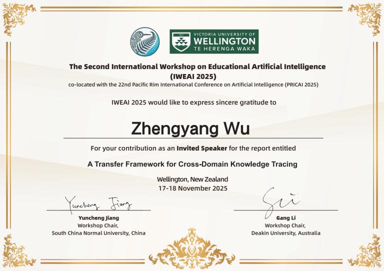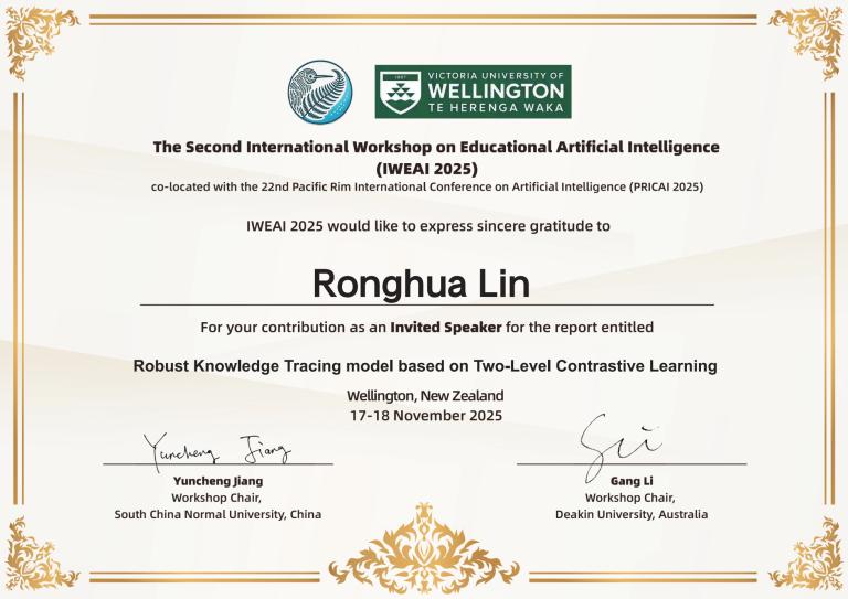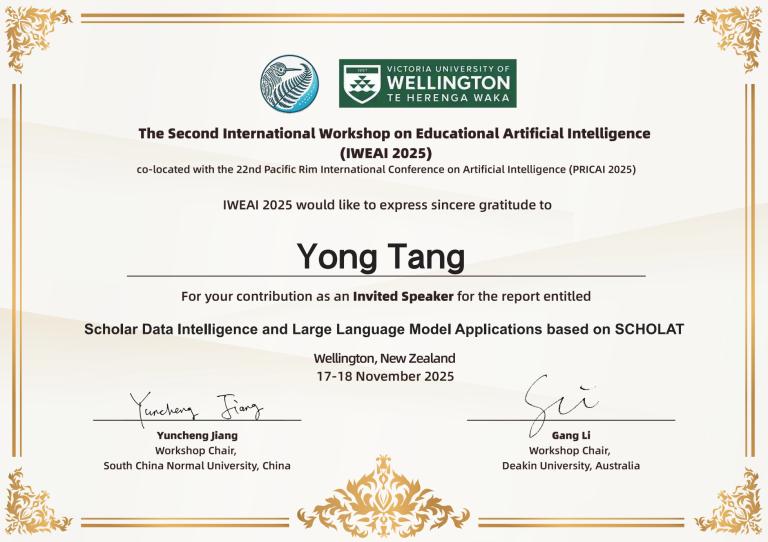 2025年11月14日-20日,SCHOLAT團隊湯庸教授、吳正洋副教授和林榮華特聘副研究員前往新西蘭基督城和惠靈頓,分別訪問林肯大學(xué)地理空間與計算技術(shù)中心Patricia Anthony副教授團隊,以及前往惠靈頓維多利亞大學(xué)參加第二屆教育人工智能國際論壇(the Second International Workshop on Educational Artificial Intelligence, IWEAI 2025, co-located with the 22nd Pacific Rim International Conference on Artificial Intelligence, PRICAI 2025),該論壇主席為華南師范大學(xué)計算機學(xué)院蔣運承教授和澳大利亞Deakin大學(xué)Gang Li教授。