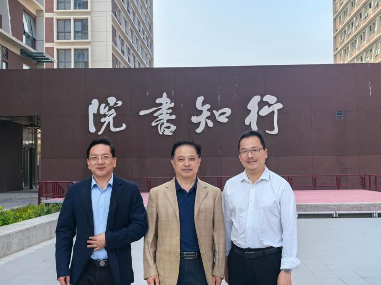 湯庸與謝承旺院長(左)和唐小煜副書記(右)在華師汕尾校區(qū)行知學(xué)院