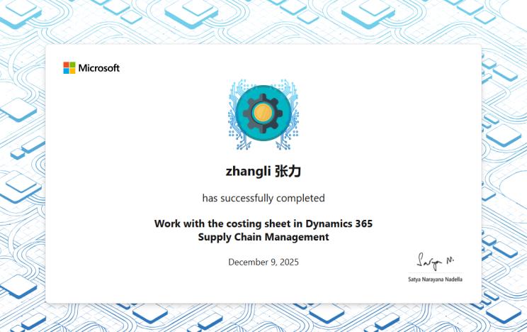 完成“微軟培訓(xùn)課程:Work with the costing sheet in Dynamics 365 Supply Chain Management”