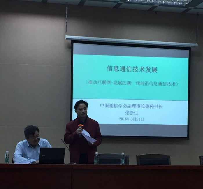 2016年3月21號上午,中國通信學(xué)會副理事長兼秘書長張新生來我校計算機學(xué)院作了題為信息通信技術(shù)發(fā)展--推動互聯(lián)網(wǎng)+新一代前沿信息通信技術(shù)的報告。計算機學(xué)院教師、博士和碩士研究生等幾十人參加了學(xué)術(shù)報告會,報告會由計算機學(xué)院院長湯庸教授主持。