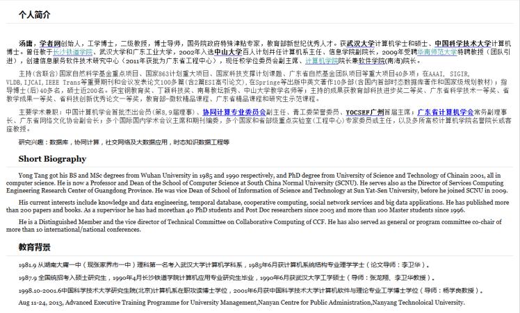 個人簡介已經(jīng)取消了英文填寫部分,以前填寫了英文簡介的用戶的英文簡介現(xiàn)已合并到中文簡介部分,以后就只有一種編寫模式,在這個模式下,用戶可以編寫中文簡介,也可以編寫英文簡介。編寫好的簡介會在個人主頁顯示,而且中文主頁和英文主頁顯示內(nèi)容一樣。如下圖: