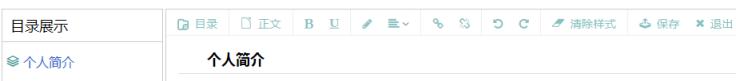 個人簡介采用文本形式。正文可加粗、顏色、鏈接等;提供目錄自定義功能,最多可定義16個一級目錄,例如:個人簡介、教育背景、工作經歷、獲獎信息、教學、代表成果、研究興趣、喜愛的鏈接、聯(lián)系信息等。