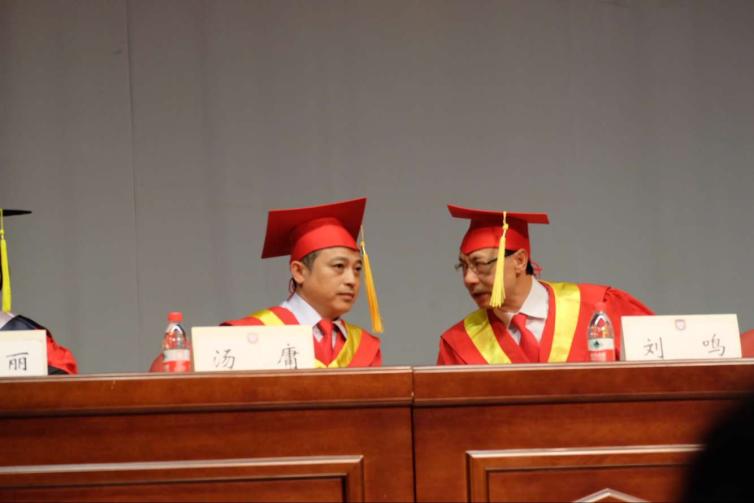 6月27日華南師大石牌校區(qū)博士、碩士學(xué)位授予儀式上(右為劉鳴校長,左為湯庸)