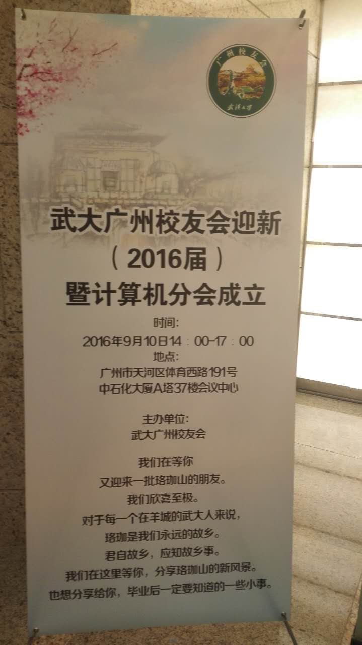 2016年9月10日,武漢大學(xué)廣州校友會迎新(2016屆)暨計(jì)算機(jī)分會成立大會在廣州中石化大廈順利召開。武漢大學(xué)計(jì)算機(jī)學(xué)院胡瑞敏院長、國際軟件學(xué)院崔曉暉院長、計(jì)算機(jī)學(xué)院校友辦傅杰老師專程從武漢來到羊城出席了會議。武漢大學(xué)廣州校友會秘書長謝石松教授等近300名校友參加了活動。