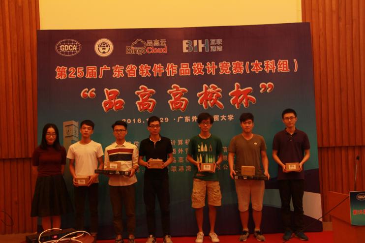 由廣東省計(jì)算機(jī)學(xué)會主辦、廣州市品高軟件股份有限公司冠名、廣東外語外貿(mào)大學(xué)思科信息學(xué)院承辦的第25屆廣東省“品高高校杯”軟件作品設(shè)計(jì)競賽本科組決賽,于10月29日在廣東外語外貿(mào)大學(xué)大學(xué)城校區(qū)舉行,指導(dǎo)的學(xué)生作品《藍(lán)牙門鎖》(參賽學(xué)生:14級創(chuàng)新班鐘志堅(jiān)、邵國際、區(qū)永勝)獲得二等獎(jiǎng),總成績排名第5,是學(xué)校歷屆參賽隊(duì)伍的最好成績。此外,競賽首次舉行的人氣獎(jiǎng)票選活動中,在全院師生的大力支持下,也以微信投票數(shù)第3的成績獲得二等獎(jiǎng)。