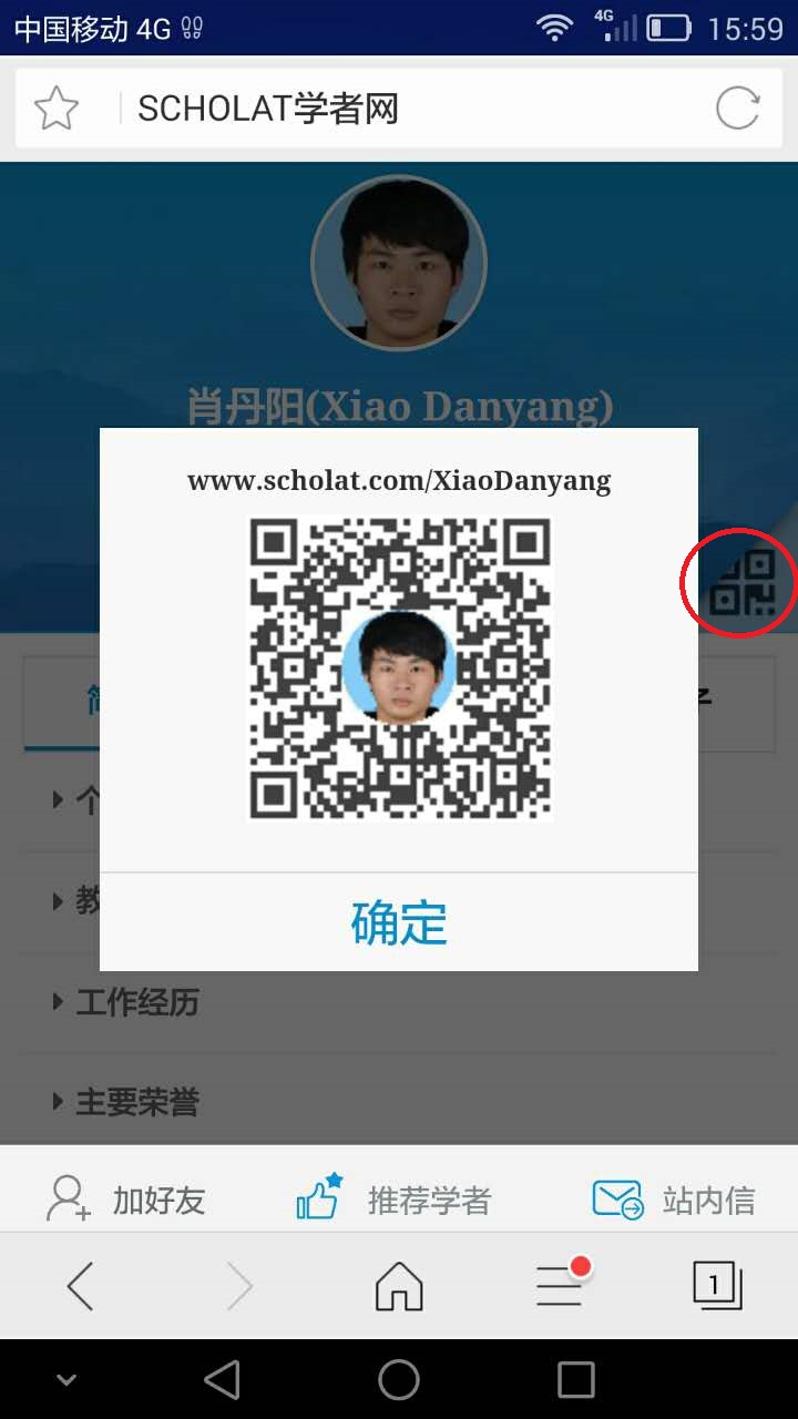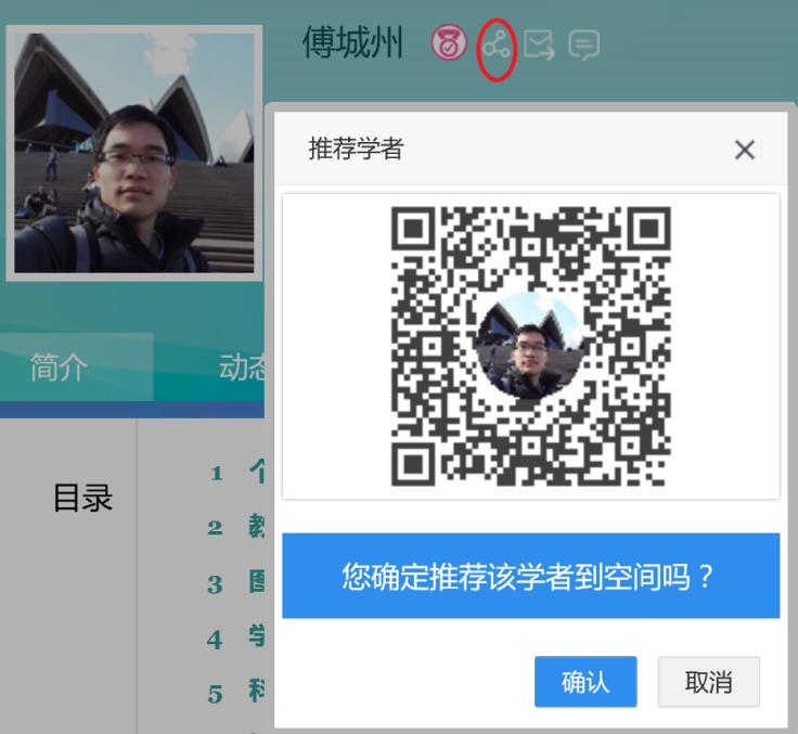 1)電腦版點(diǎn)擊主頁(yè)的“分享”按鈕獲取“學(xué)者二維碼”