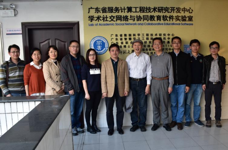 2017年1月10日,何德全院士一行5人訪問華南師范大學(xué)計算機(jī)學(xué)院,專程與SCHOLAT研究團(tuán)隊進(jìn)行了學(xué)術(shù)社交網(wǎng)發(fā)展探討交流和指導(dǎo)。計算機(jī)學(xué)院湯庸院長和卓雄輝書記,肖菁教授、朱佳副教授、李建國副教授、陳國華講師、陳潔敏高級實驗師、陳劍飛老師、李春英副教授(博士)、傅城州等40多名博士生和碩士研究生參加了研討會。