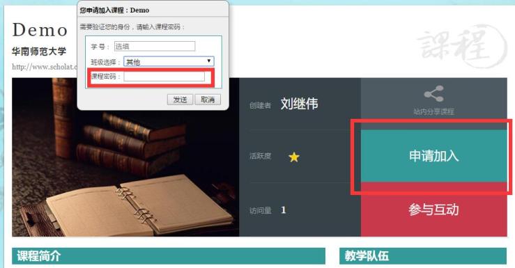 學(xué)生提出申請(qǐng)后,會(huì)按照您在設(shè)置的課程加入權(quán)限進(jìn)行,如果是密碼驗(yàn)證,則用戶輸入密碼后不需要驗(yàn)證即可加入課程。