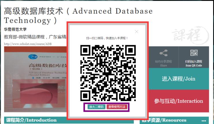 1.進入課程主頁,點擊【掃碼加入課程】按鈕便會彈出該課程二維碼。