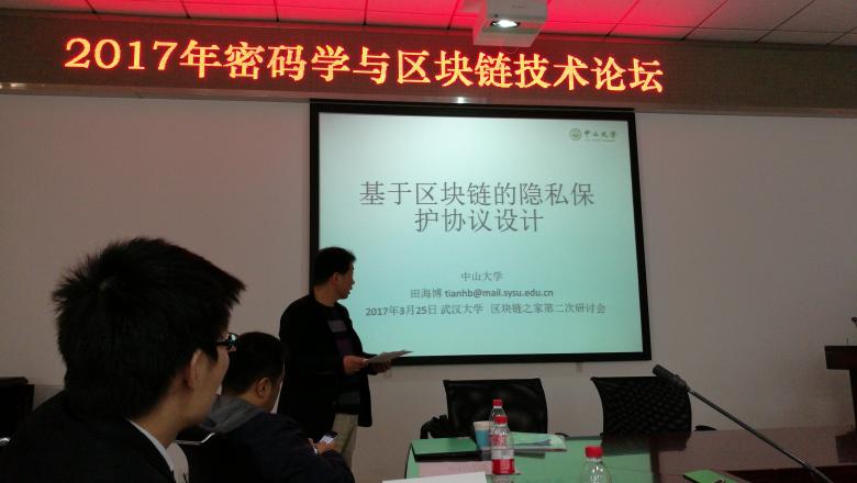 2017年3月25日,在武漢大學(xué)參加由珞珈青年學(xué)者何德彪教授組織的“密碼學(xué)與區(qū)塊鏈”論壇。