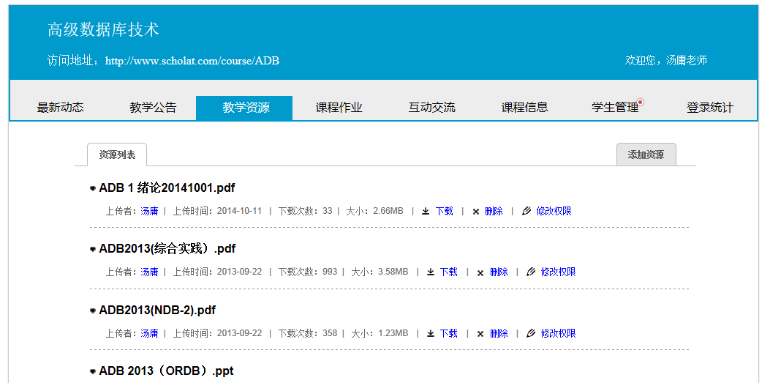 學(xué)者網(wǎng)“課程網(wǎng)站”基本功能:發(fā)布課程通知和教學(xué)資源(課件)、布置作業(yè)、交流互動和管理教學(xué)過程等。應(yīng)用“課程平臺”還可以管理教學(xué)信息,應(yīng)用學(xué)者網(wǎng)建立師生社交網(wǎng)絡(luò),還可以進(jìn)行相關(guān)數(shù)據(jù)挖掘和推薦服務(wù),實(shí)踐MOOC教學(xué)模式等。