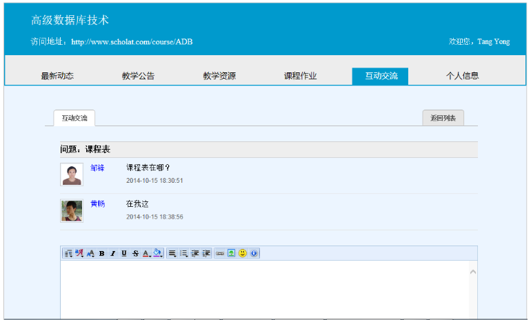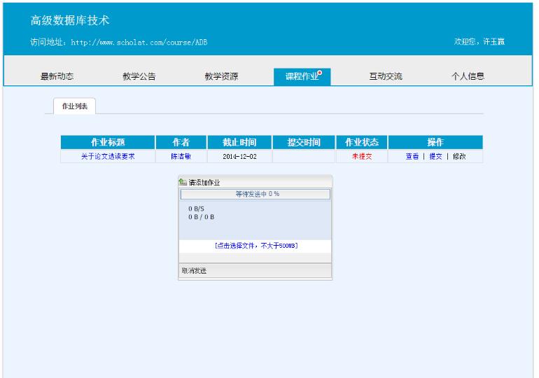 學(xué)生用戶登錄學(xué)者網(wǎng)進(jìn)入課程后臺,可以及時了解課程的動態(tài)和通知,下載課程的課件、提交作業(yè),與師生互動交流。
