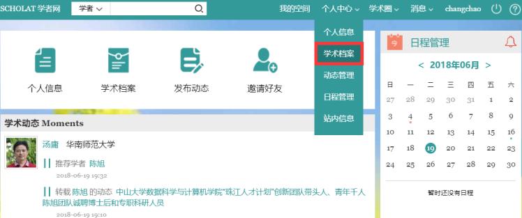 首先登陸學(xué)者網(wǎng),進入“個人中心”->“學(xué)術(shù)檔案”
