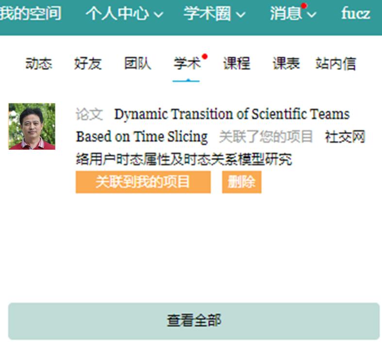 關(guān)聯(lián)成功后,可以發(fā)送消息提醒論文聯(lián)合作者關(guān)聯(lián),其他聯(lián)合作者收到信息后,只要同意,即可一鍵將此論文與項目在自己的學(xué)術(shù)檔案中關(guān)聯(lián)!