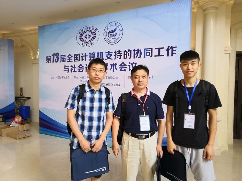 團隊部分參會人員:湯庸教授(中),李建國副教授(左),林榮華研究生(右)