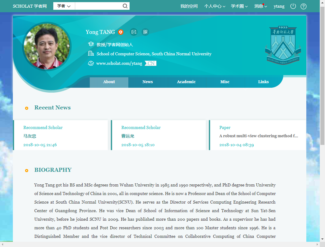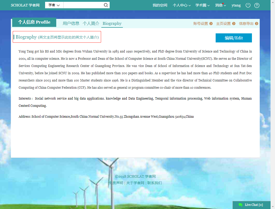 下面是編輯了Biography的英文主頁(yè)(如果還來(lái)不及編輯Biography, 將默認(rèn)展示個(gè)人簡(jiǎn)介信息)。