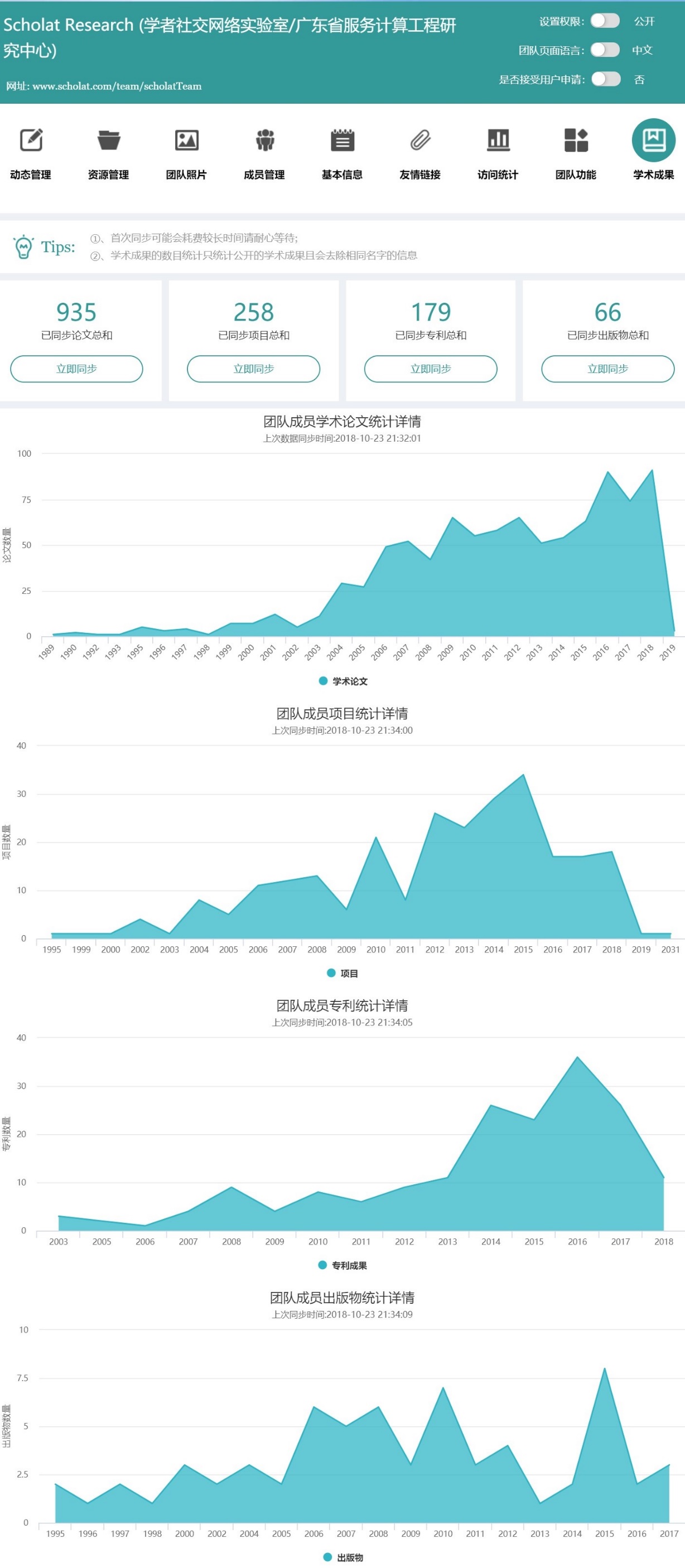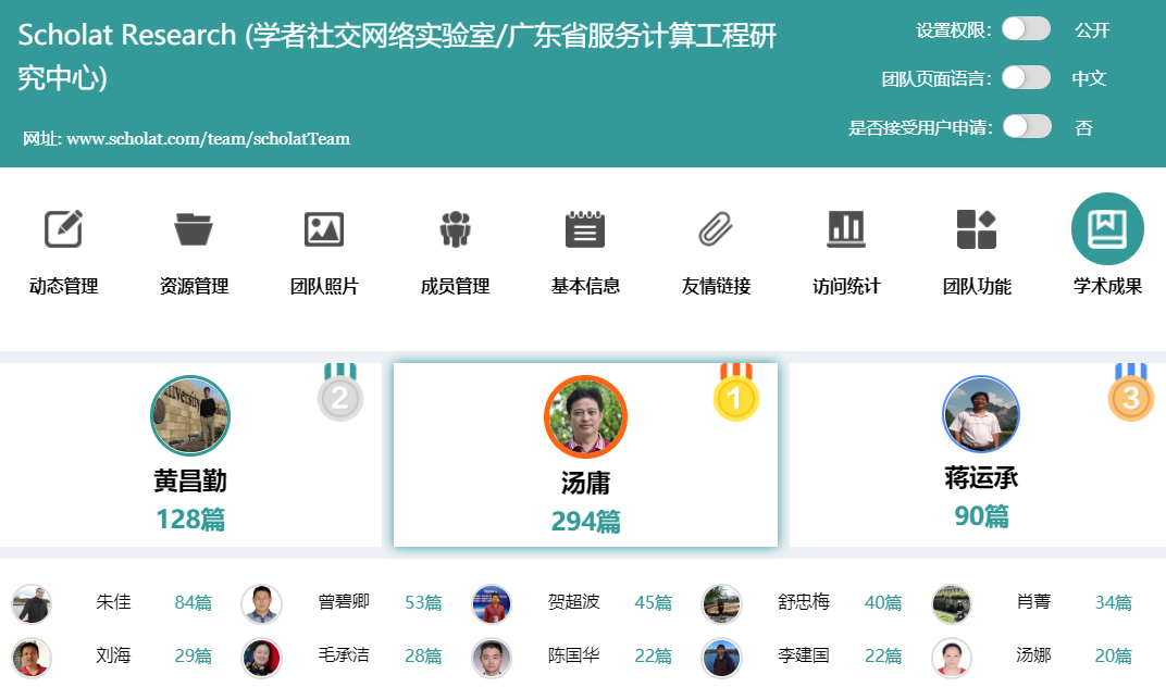 學(xué)者網(wǎng)提供的構(gòu)建科研協(xié)作團(tuán)隊(duì)功能,是面向科研實(shí)體開(kāi)展科研活動(dòng)、記錄科研過(guò)程和成果的需求而提供的服務(wù)。具有一定資質(zhì)的用戶可以創(chuàng)建團(tuán)隊(duì),并對(duì)團(tuán)隊(duì)成員、團(tuán)隊(duì)資源、團(tuán)隊(duì)科研動(dòng)態(tài)等進(jìn)行管理。研發(fā)小組也一直在更新科研團(tuán)隊(duì)功能,提供給大家更優(yōu)質(zhì)的服務(wù)!